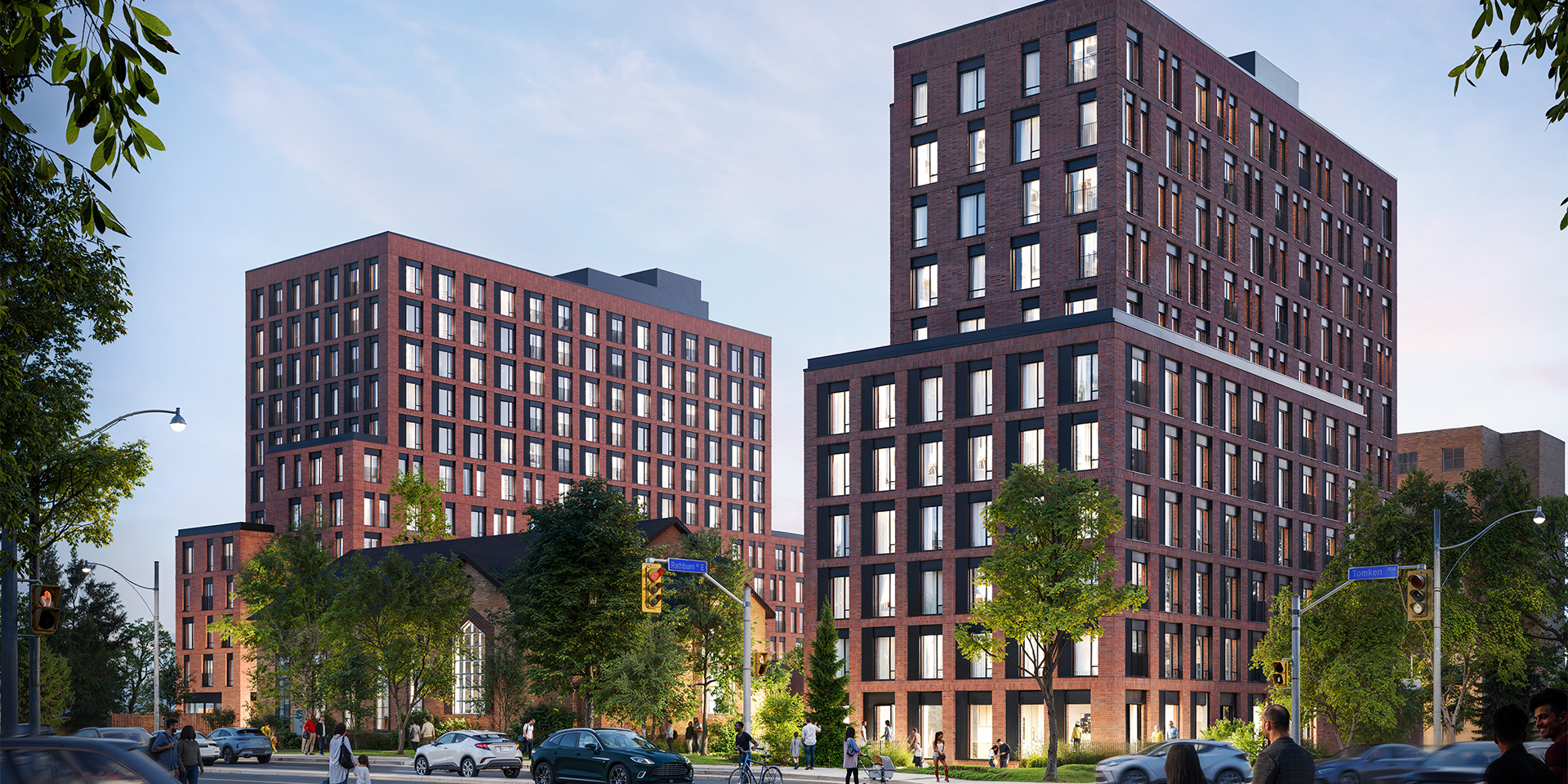 4094 Tomken Road brings 250 thoughtfully and sustainably designed rental homes to a serene Mississauga community. The project features two new 12-storey buildings that complement the retained seven-storey rental building on-site, adjoined by a naturally landscaped courtyard.